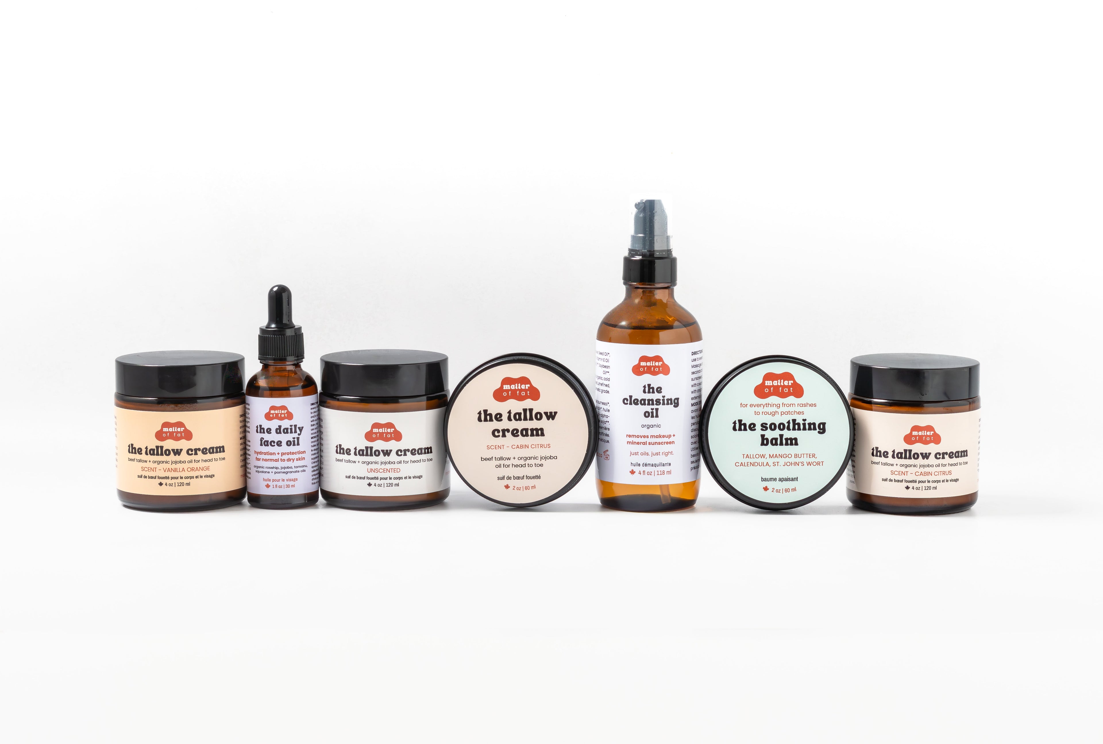 Minimal-ingredient, gentle skincare crafted with 100% grass-fed Canadian beef suet tallow, organic plant oils and soothing botanicals.